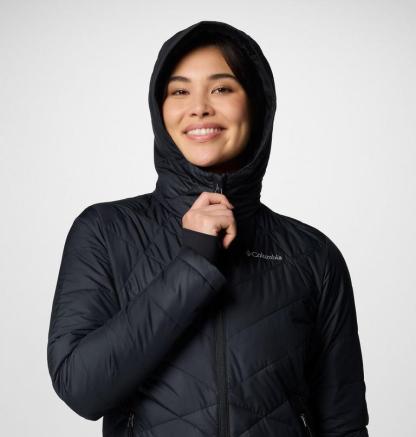 Stay snug in this water-resistant hooded jacket with reflective thermal lining, drop tail and synthetic down insulation.
